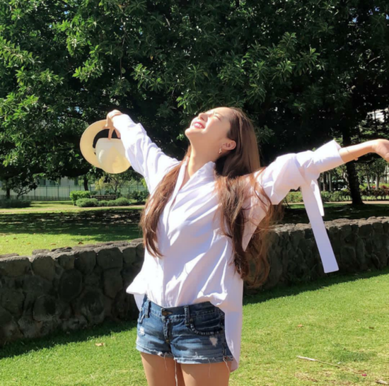 朴敏英欧尼前阵子去度假的美照也晒出了白衬衫LOOK,看起来清爽又迷人。